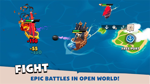 战斗机制:接近敌船时,角色会自动开火,展开激烈对抗。