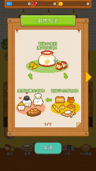1 、制作小麦粉,凑齐材料;制作更多面包,卖面包赚金币 ,往复循环。