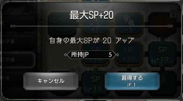 升级后可以获得JP,JP可以用来学习各种能力和技能 。