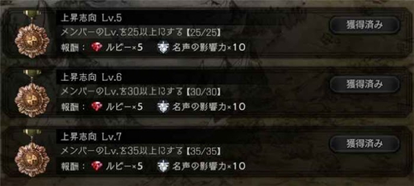 角色达到一定等级后会完成成就,成就奖励是红宝石和影响力。