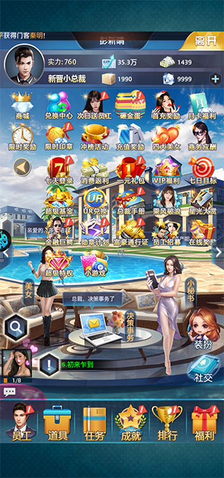 1、前期推进主线可快速解锁公司经营 、员工系统、投资玩法等关键内容,同时稳定获得大量启动资金,是新手最重要的成长路径 。