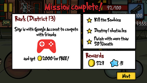 7、击杀完关卡目标数量的僵尸即可获得胜利。
