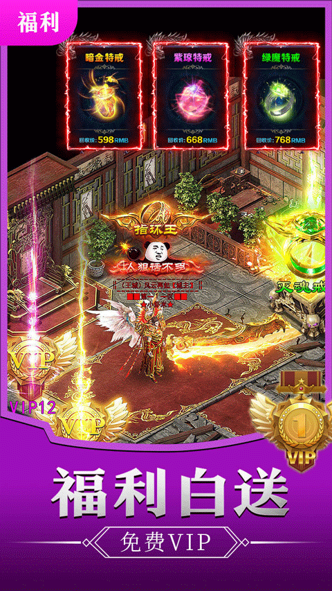 1、经典热血的火爆传奇世界 ,再战沙场,自由战斗。