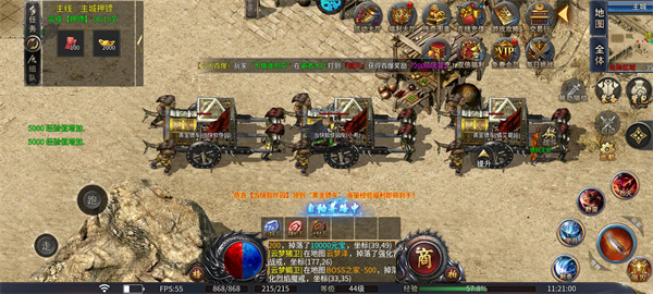 4、沙城争霸回归,热血团战核心玩法:经典攻城战全面升级 ,行会对抗 、阵营混战,强调配合与战术,是长期核心PVP内容。