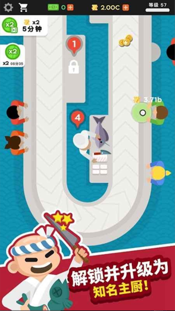 Sushi Bar Idle是一款轻松有趣的模拟经营手游,玩家在游戏中化身寿司店老板 ,从零开始打造属于自己的美食帝国,采用清新可爱的卡通画风与治愈系背景音乐,营造出温馨惬意的日式料理氛围 ,体验从街边小店成长为连锁名店的完整历程。