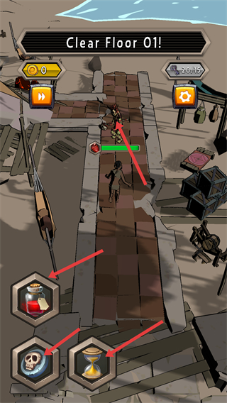4、进入地牢,需要对战敌人 ,操控角色移动,还能使用药水、骷髅头等道具,助力完成清理敌人任务。