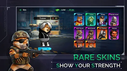 欢迎来到《狗狗逃生射击》的游戏世界!在这里,你将化身一只勇敢的狗狗,从零开始收集装备 ,击败敌人、躲避攻击,努力生存到最后。游戏内设有丰富的武器装备系统与成就系统,等待你逐一解锁!还在犹豫什么?快来加入挑战吧!