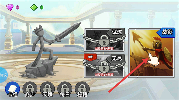 1、在主界面点击战役选项 ,进入对应的游戏关卡,开启游戏的战役模式挑战。