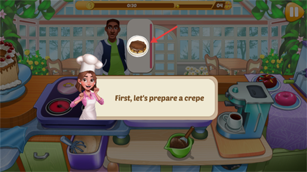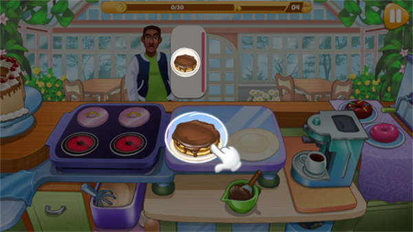 3、注意不要烧糊食物,可使用实用功能提高烹饪技巧 ,时刻关注饥饿的客户,及时提供美食。