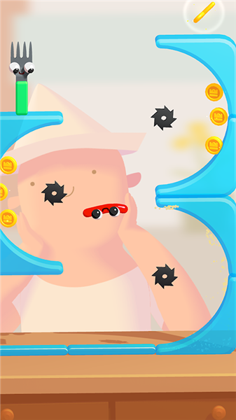 3 、落到叉子上便可闯关;