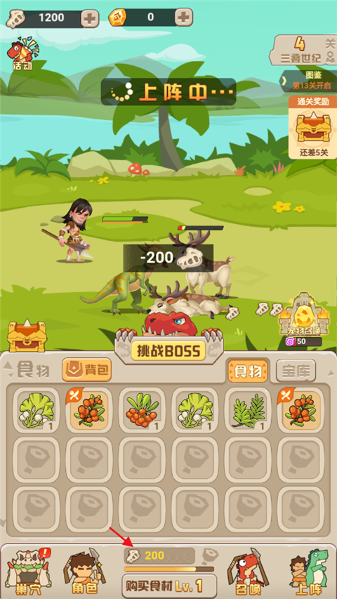 5、正常是战斗是挂机可以获得骨头,骨头可以获取食物,相同食物可合成;