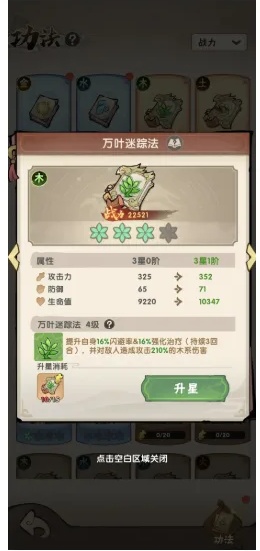 前期我们没有强大的作战能力 ,所以续航是首要的,前期我们可以用木功法来进行一个过渡(木的话竞技场和推塔能力较弱,所以前期我们升到1星左右就差不多了 ,用于前期过度),功法推荐万叶迷踪步,自带闪避和强化治疗效果,极大的提升我们的生存能力 ,辅修再选择一本功法,这里推荐同系,虽然辅修功法只有数值加成 ,附带的技能是无法生效的,但是可以影响局内属性装备出现的概率,打个比方 ,比如我选择了主修木辅修木,游历内木属性装备出现的概率是80%左右,如果我选择了主修木辅修土 ,游历内木属性装备出现的概率是60%左右,同属性功法可以让我们的装备更快成型,同时同属性装备相邻近也会带来一定的效果加成 ,所以前期我们优先同系功法开局,加快我们的体系成型!如果不喜欢同系功法开局的话,可以选择升星较多的功法作为辅修即可 。