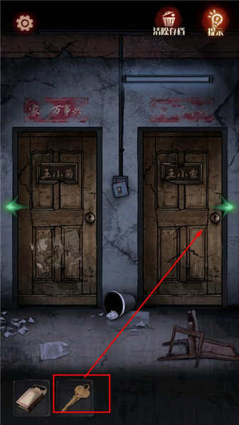 14 、向右来到卧室门口 ,使用【卧房钥匙】打开右边王小索的门,进去,第一章结束 。