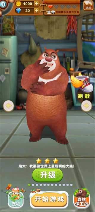 进入无尽模式后 ,你可以提升熊大的各项属性,例如生命值等,让他在跑酷过程中更加耐打。同时 ,还能解锁跑鞋等增强跑酷能力的道具,提升游戏体验 。此外,还可以切换其他皮肤,享受不同的视觉效果。
