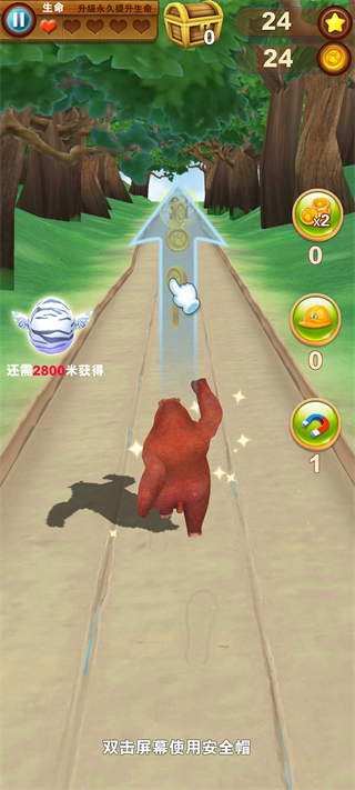 这一次,整个世界换上了春装 。脚下的草地从枯黄转为鲜绿,森林里的树木抽出新芽,阳光透过枝叶洒下来的光斑带着暖意。特效细节比之前更加丰富——跑动时扬起的尘土、跳过水洼时溅起的水花、穿过花草时飘落的花瓣 ,都在告诉眼睛:春天来了。角色也没被落下,熊大的毛发质感更细腻,奔跑时肌肉的牵动清晰可见;熊二憨憨的表情里多了几分生动的细节 。关卡重新打磨过一遍 ,障碍物的排布更讲究节奏感,该加速的地方绝不拖沓,该跳跃的时候正好起跳。跑起来比以往任何时候都顺畅。