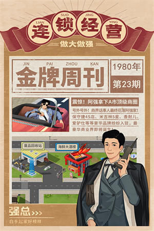 超现实的经营模式把商界沉浮原原本本搬到眼前。从小城一家不起眼的店铺起步,慢慢扩张到全省、全国,直至点亮世界版图。草根出身的打工人,凭借金牌合伙人的商业思维,在尔虞我诈的商战中一步步站稳脚跟。破除勾心斗角,化解明枪暗箭,最终站在商界之巅。沉浸式的逆袭体验,让每一次抉择都带着分量,每一次成功都格外真实。