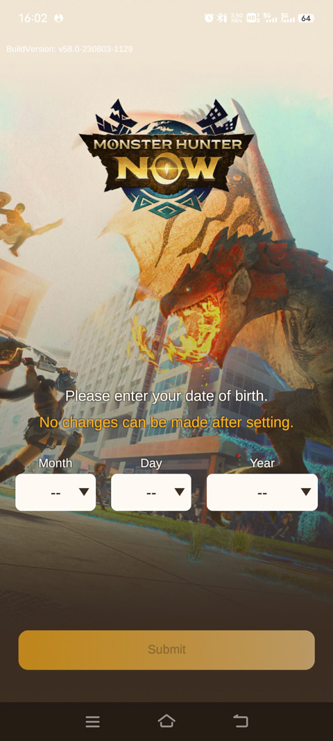 1、打开怪物猎人Now国际服,游戏需加速器启动,进入游戏后,选择出生年月日;