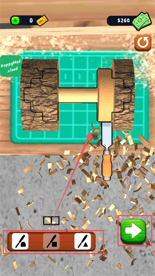2、 物理引擎:采用先进的物理运算技术,不同木材的硬度与纹理对刀具的反应各不相同,操作手感真实且富有变化。