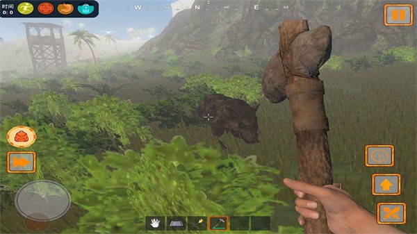 2、 工具制作:利用石头、棍棒等原始材料打造武器与工具,提升采集效率并防御野兽袭击。