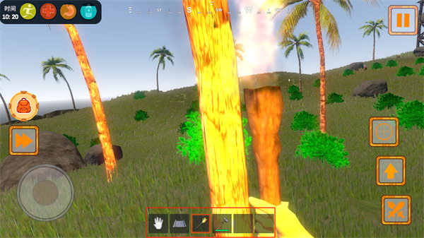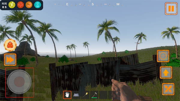 1、 资源收集:玩家需在森林、海滩等地搜寻食物 、水源与材料,满足基础生存需求以维持生命体征。