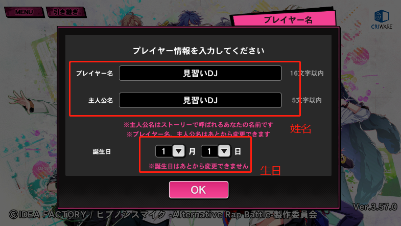 2 、然后输入游戏名字以及生日 ,注意这里点击【ok】后还需要再确认一遍;