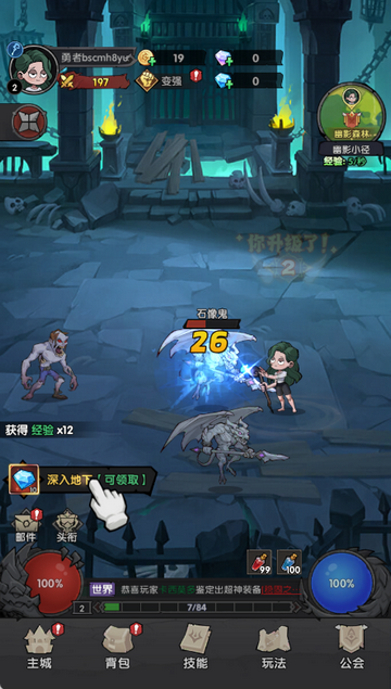 2、攻击面前的怪物,胜利后领取奖励