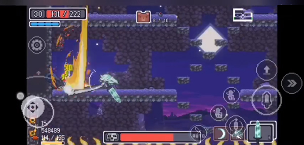 3、游戏采用了横版移动操作,屏幕左边轮盘控制角色移动,右边则为攻击、跳跃 、冲刺等键位;