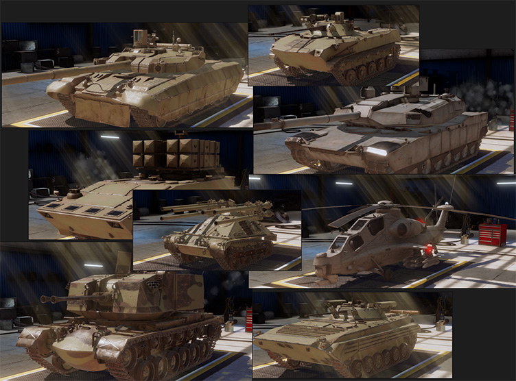 游戏内置了超过60种独一无二的坦克和飞机供你驾驭。从二战时期的经典谢尔曼、T-34 、虎式坦克,到冷战时代的现代化主战坦克;从螺旋桨战斗机到喷气式战机——每一款载具都经过精心还原,拥有独特的外观和性能参数 。