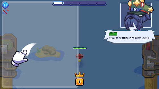 2、拖动屏幕左侧控制飞机移动