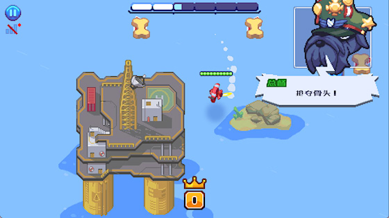 2、 吞噬成长:击落敌机或拾取场景中的骨头可积累能量,使自身体积变大、火力增强,但同时也更容易成为其他玩家的攻击目标。