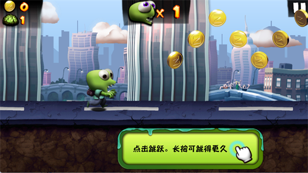 游戏的操作简单到极致——只用一个按钮,就能控制整个僵尸部落。点一下,部落前进;长按,加速冲刺;松开,收集金币。不用复杂的操作,不用多指配合,一个拇指,搞定所有。带上你的僵尸军团,在城市的街道上横冲直撞,就是这么简单。