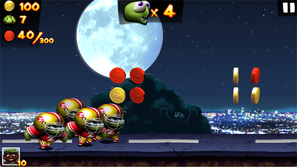 游戏里藏着十种令人兴奋的奖励道具。忍者附体让你飞檐走壁,中国龙让你腾云驾雾,UFO将你吸上天空,海啸席卷一切障碍。还有旋风、巨兽、幽灵、巨人……每一种奖励都能带来完全不同的跑酷体验。捡到它们,你的僵尸军团就会瞬间变身,势不可挡。
