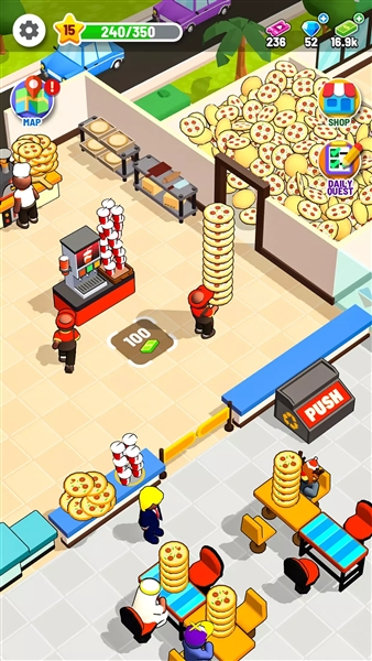 3、高清精美画质,打造沉浸式视觉体验:采用清新明快的美术风格,画面细腻精致、色彩饱满鲜活,从披萨制作的细节流程、工厂门店的场景布置到顾客的生动神态,都刻画得栩栩如生,在经营过程中享受舒适视觉盛宴,彻底沉浸在披萨经营世界中。