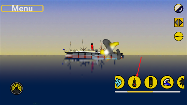 4. 点击右下角的瞄准按钮,可使用多种方式攻击船只,例如发射炮弹 ,使其加速下沉。