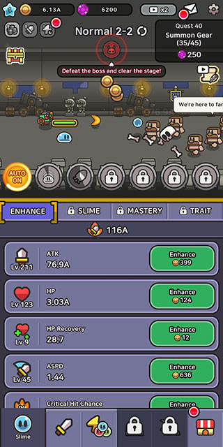 2、化身史莱姆,击败强敌积累财富,逐步强化装备与属性