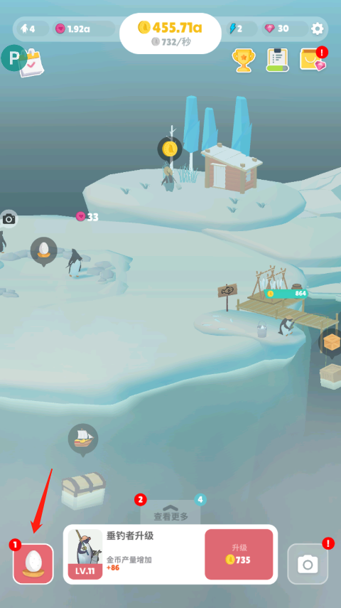 1、当赚取足够的金币时,便可以获得一颗企鹅蛋,此时点击左下角的企鹅蛋。