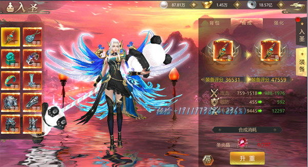3、入圣装备可以通过分解得来的圣炎晶来合成或使使其提高一位重数,从而获得更高的属性哦!但只能合成到当前入圣重数对应的装备 。