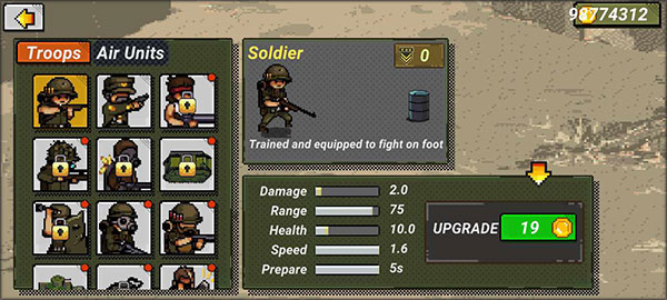 7、还能解锁多种的兵种,让你的排兵布阵更加多样,还能对每个兵种进行升级,让他们作战能力更加强大。