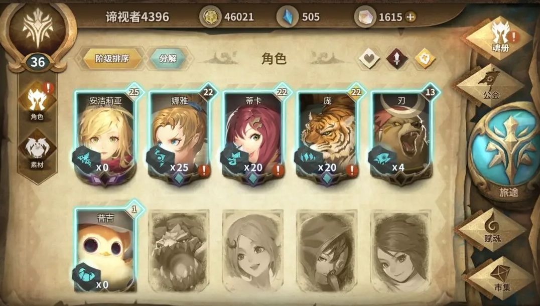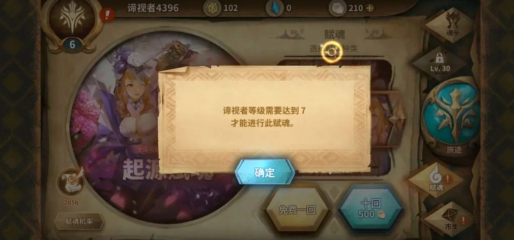 给角色注魂 ,角色升级,最高不超过谛视者等级。
