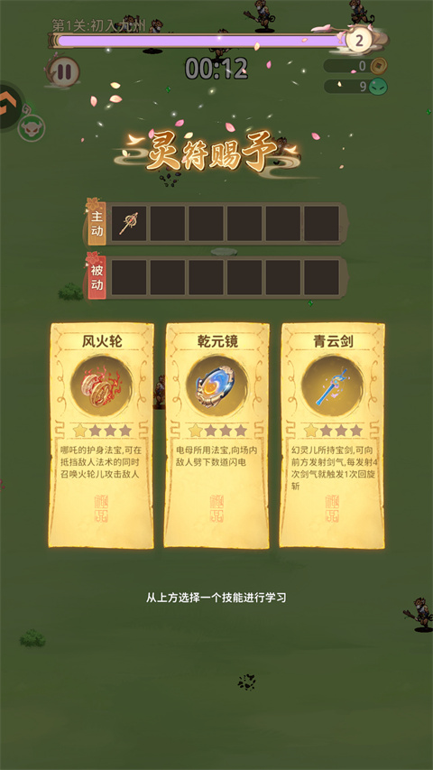 3 、上方进度条满后 ,可触发灵符技能选择 。