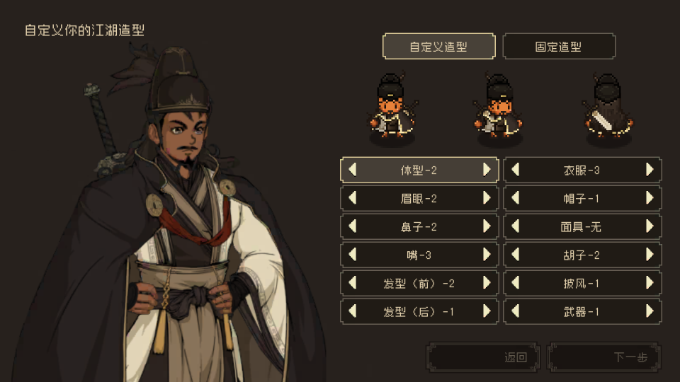 2 、你可以自定义你的江湖造型,然后点击下一步;
