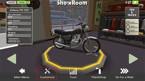 1 、打开游戏,进入摩托车页面,点击下方cystomize;