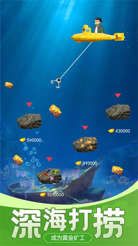 1、 潜水打捞: 操控潜水艇在海床上寻找目标 ,利用声呐系统探测隐藏物体。点击屏幕即可启动机械臂进行抓取,操作简便却需把握时机,否则可能错失良机 。