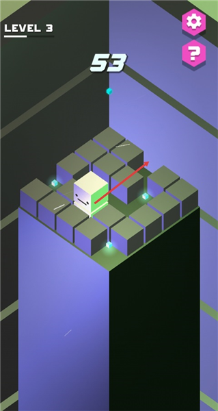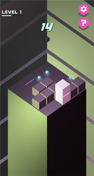 3 、 分数积累:消除方块后,地面会掉落小钻石,每捡起一个小钻石即可加1分 ,屏幕上方会实时显示当前分数;分数越高,成就感越强,还能在好友间分享炫耀 。