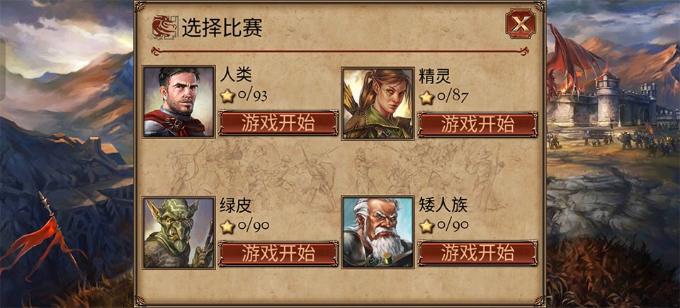 1、进入游戏内,点击“选择比赛”开始游玩,提供了4大种族选择。